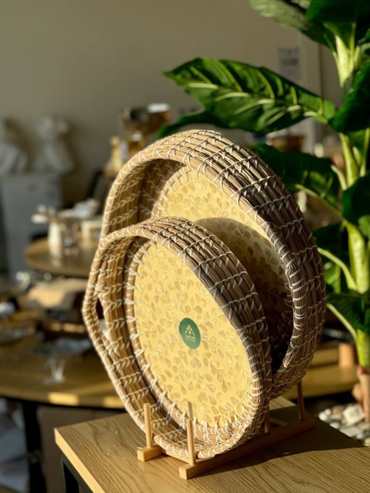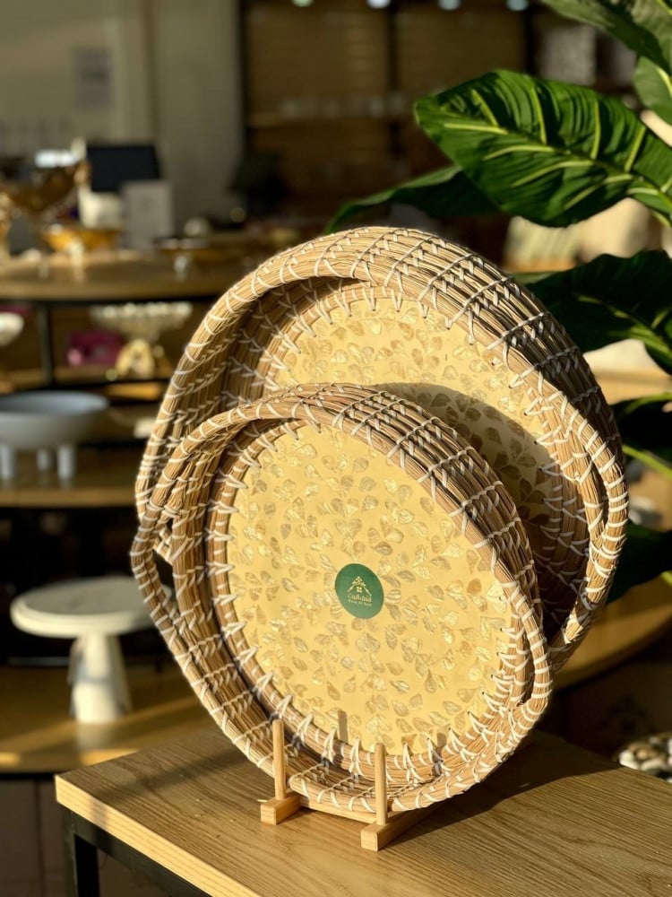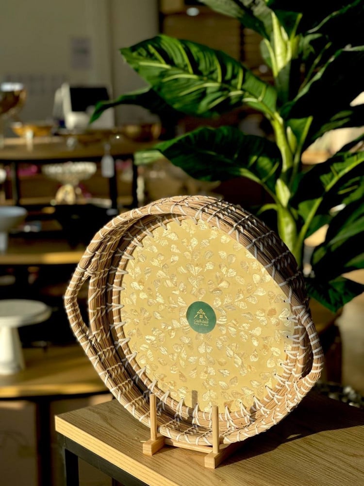تُصنع صينية التقديم الدائرية بعناية فائقة باستخدام الياف بحرية لؤلؤية، التي تُعد واحدة من المواد الطبيعية ذات الجودة العالية. تجسد هذه الصينية التصميم الفني الرفيع الذي يجمع بين التراث والابتكار، مما يجعلها قطعة فنية لا غنى عنها في كل منزل أو حفل. بفضل تقنيات التصنيع المتقدمة، تظل هذه الصينية دائمًا متجددة وجميلة، مما يجعلها الخيار الأمثل للمناسبات الخاصة.
