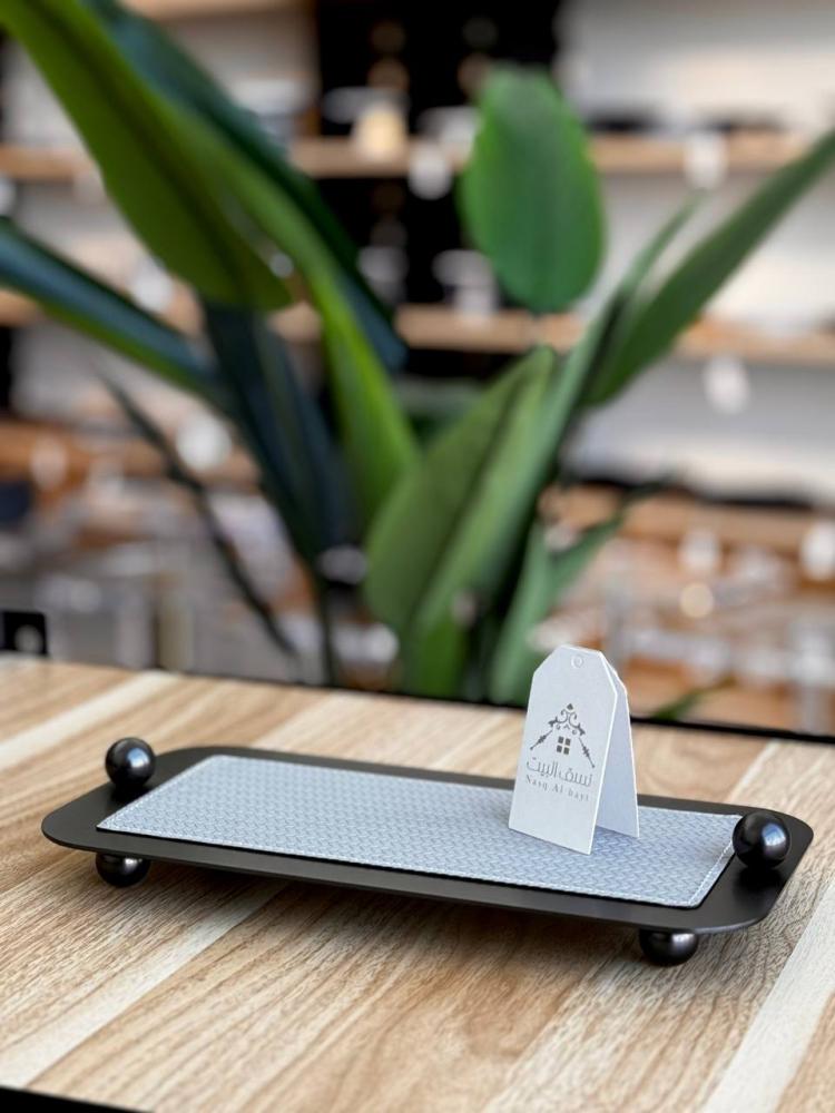 استُلهم تصميم هذه الصينية من فنون الضيافة التقليدية المعاصرة، حيث تمزج بين المواد الطبيعية مثل الجلد والمعدن. يعكس هذا التصميم الذوق الرفيع ويضفي لمسة من الأناقة على كل طاولة. تُعتبر هذه الصينية تجسيدًا للابتكار في عالم تقديم الضيافة، حيث تجمع بين الأسلوب العصري والراحة.