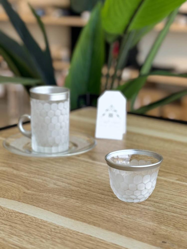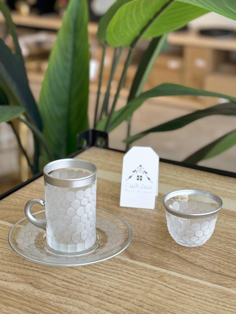 طقم شاهي وقهوة 18 قطعة بتفاصيل ثلجية وفضية وبتصميم مميز ..